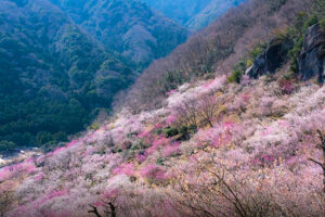 雄大な幕山の自然を背景に約4,000本もの紅梅・白梅が
